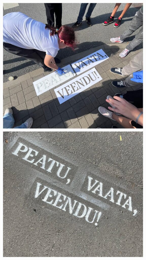 5. klassi õpilased osalesid projektis “Peatu, vaata, veendu!”, mille käigus markeeriti kooli ümbruse ülekäigurajad.