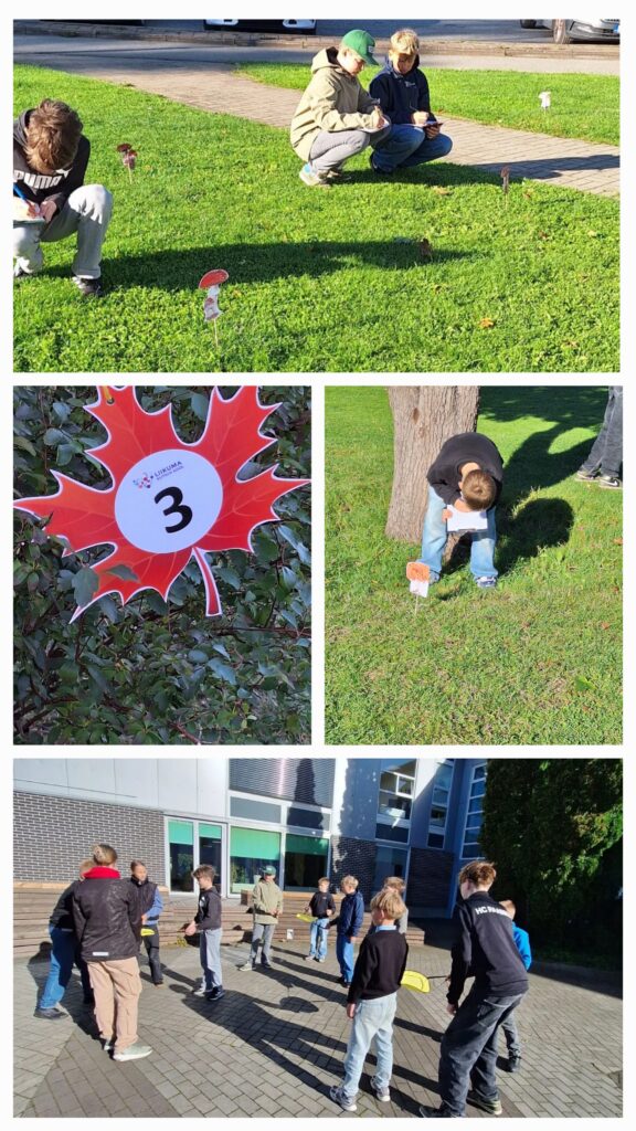 Õues käis 6. klass kordamas 1.-3. teema sõnavara. Otsiti õuealalt vahtralehti, seeni ja ühte lille. Tõlgiti lauseid ja sõnu. Tunni lõpus mängiti viskamise ja püüdmise mängu -harjutati meeskonnatööd.