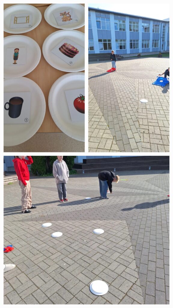 6. klass õppis vene keele tunnis nimisõna sootunnuseid ning mõned tunnid hiljem käidi õues nimisõna sootunnuseid kordamas. Taldriku alt tuli pilt vene keelde tõlkida ja määrata nimisõna sugu, siis saadi õigus visata liivakotiga täpsust ja tuua enda võistkonnale punkt. Kui nimisõna oli kesksoost, tuli kärbsepiitsaga lüüa rohelise lehe pihta.