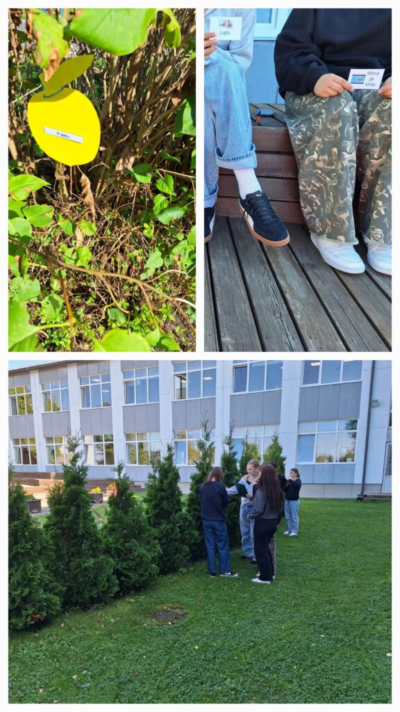 7. klassi vene keele grupp kordas õues sõnade tööks teemal “Inimene”. Esiteks tuli sõnakaartidel olevad laused tõlkida eesti keelest vene keelde ja teiseks tuli õuealalt üles otsida 25 õunakest ja neil olevad venekeelsed laused tõlkida eesti keelde. Tegevusega ühines ka õpetaja Triinu-Mari ja tema 1. klassi õpilane, kes aitas oma venda õunte otsimisel ja tegi ka teistega koostööd.