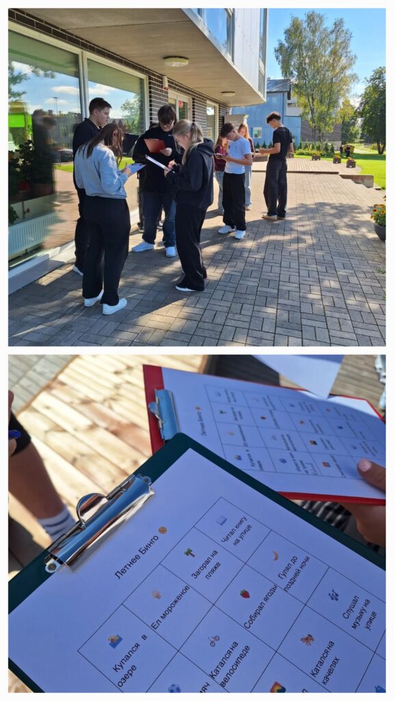 8.R tegi vene keeles õuesõpet. Tund algas kõnniloenguga, mille ajal kuulati kahte helifaili teksti kohta. Järgnes meeskonnatöö. Esiteks tuli leida üles õiged pusletükid ja panna nendest tekst kokku. Teiseks tuli jäätisepallide juurde panna õige küsimuse vastus.