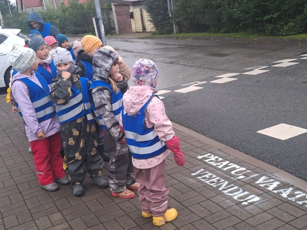 Pähklikesed käisid ohutu liiklemise teemal alevi peal õppekäigul, kus otsiti erinevaid liiklusmärke. Arutleti, kuidas ohutult teed ületada ja kuidas on teeületuskohad märgistatud.