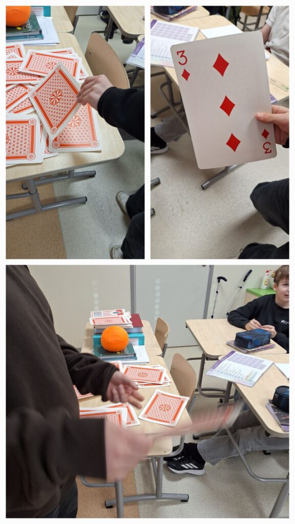 6. klassi liikumispaus vene keele tunnis- õpilased võtsid laualt kaardi ja pidid ütlema nii palju venekeelseid sõnu, mis number kaardil oli.