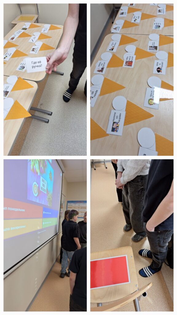 6. klass õppis vene keele tunnis LKK-le kohaselt nädalapäevi ja küsisõnu. Mängiti jäätisepallide rallit ja liikuvat Kahooti.