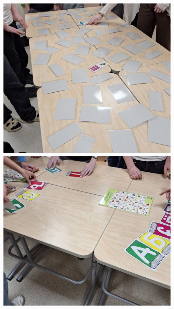 6. klass kordas vene keele tunnis tähestikku -mängiti memoriini liikudes ja rühmatööna pandi tähed õigesse järjekorda tähestiku järgi. Mängiti ka sõbrapäeva kahooti.