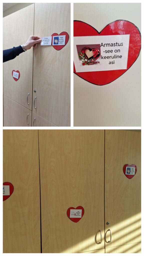 8.V ja 8.R klassid kordasid täna teemat: “Keda ma armastan?”. Seintel oli 16 südamekest ja tuli leida neile õige paariline.