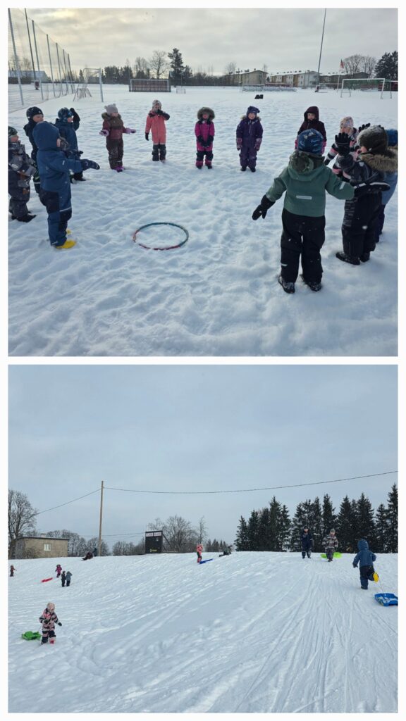 Koopaoravate liikumistund õpetaja Ljudmillaga kelgutades ja mängides.