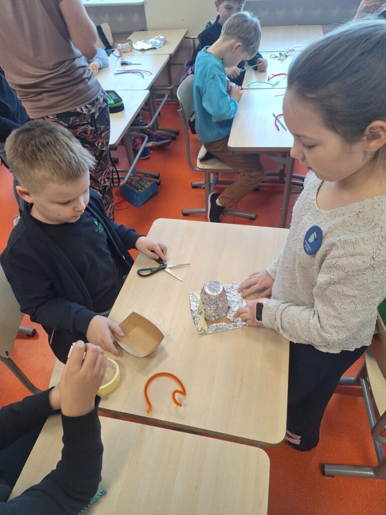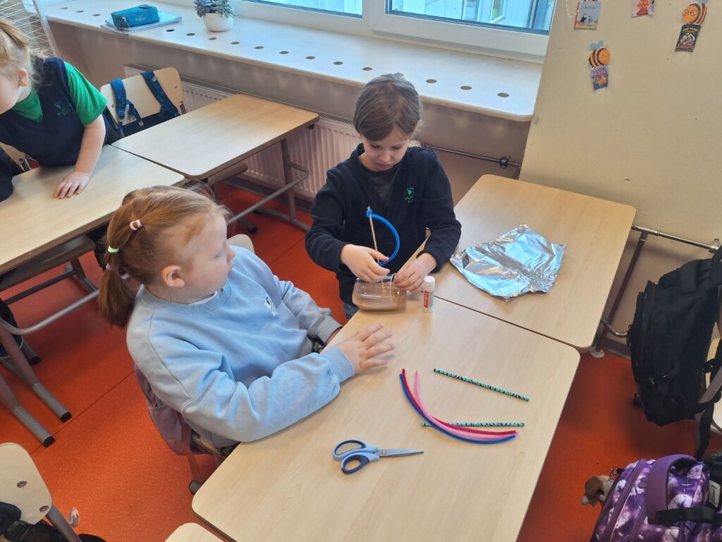 🌡️1.K klassi õpilased panid end proovile laevade ehitamisel. Rühmade ülesandeks oli meisterdada veepinnal püsiv alus, valides etteantud vahendite hulgast just need kõige sobivamad. Õpetaja sekkumiseta pidid lapsed ise lahendusi otsima, harjutades seejuures koostööd, teistega arvestamist ning ettevõtlikkust.