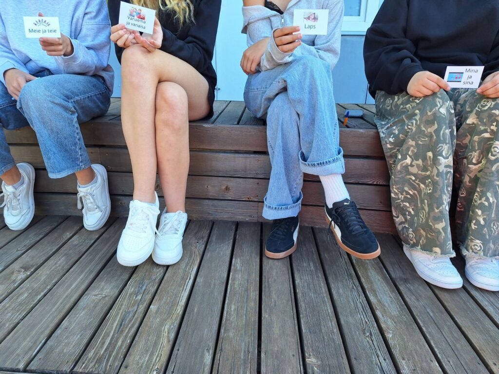 🎯7.klass kordas õues vene keele sõnade tööks , teemal: “Inimene”. Sõnakaartidel olevad laused tuli tõlkida eesti keelest vene keelde ja õuealalt üles otsida 25 õunakest ning neil olevad venekeelsed laused tõlkida eesti keelde. Meiega ühines õp. Triinu-Mari ja tema 1.kl. õpilane, kes oli abiks õunte otsimisel.
