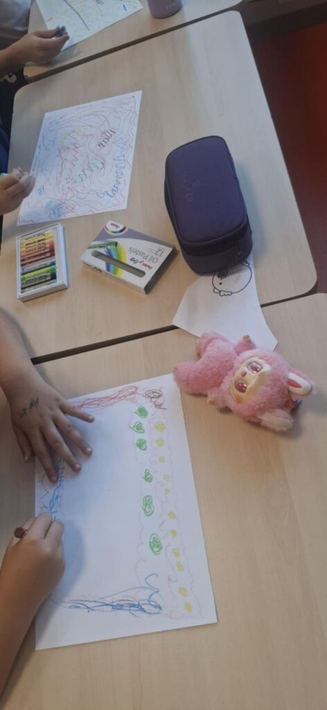 🎯1.K klass kuulas kunstis Vivaldit ja joonistas selle järgi jooni, hiljem kattis tekkinud alad erinevate mustritega. Eesmärgiks oli loovuse väljendamine ja emotsioonide kandmine paberile.