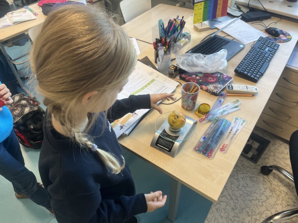📣2. M klass kaalus ja mõõtis loodusõpetuse tunnis aiasaadusi. Enne tuli lastel eeldada, mis nad ise arvavad, kui raske või kui pikk on teatud saadus.