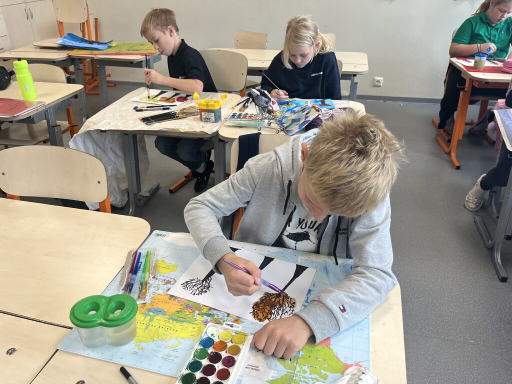 📣3. klass maalis akvarellidega sügisevärvides puid ja õppis hajutamistehnikat.