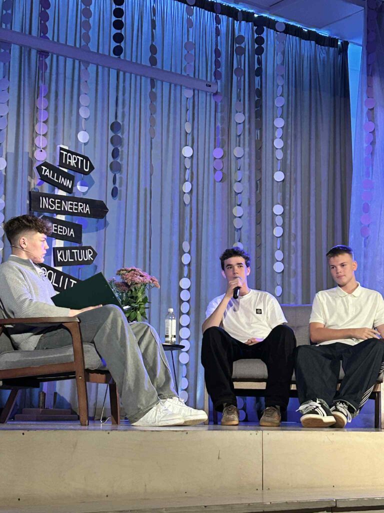🌰Ettevõtlikul ajal käisid meie kooli 4.-9. klasside õpilastele rääkimas oma teekonnast näitlejani ja kogemusest filmivõtetel, “Fränk” filmi peaosalised Derek Leheste ja Tõru Kannimäe. Neid modereeris meie õpilasesinduse esindaja.