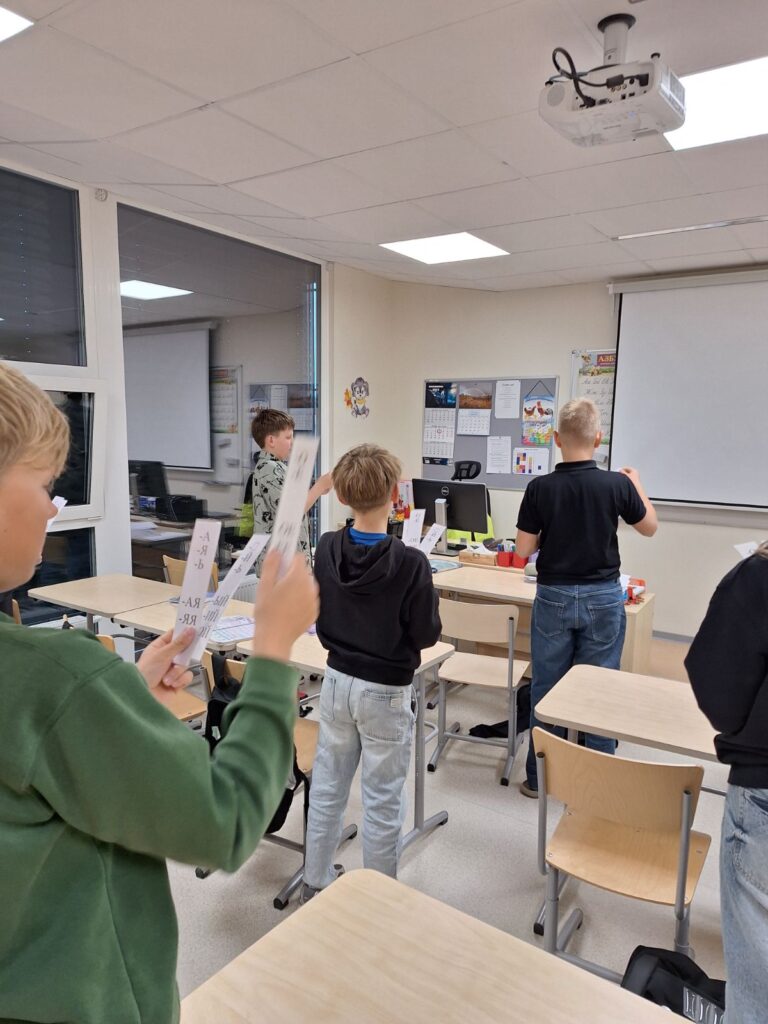 🌰8V klass mängis vene keele tunnis erinevaid õppemänge teemal: “Minu nädal”. Kõigepealt võeti üks mängukaart ja numbri järgi pidi tahvlile kirjutama selle nädalapäeva, mitmes päev see nädalas on. Teise mänguga harjutati ütlema, kus ja mis nädalapäeval sa olid. Veeretati täringut ja otsiti klassis üles selle numbriga vahtraleht. Vahtralehe taga oli nädalapäev ja mingi koht. Nende sõnadega tuli koostada lause. Tunni alguses visati palli ja nimetati nädalapäevi ning ajamõisteid. Tund oli hoogne.