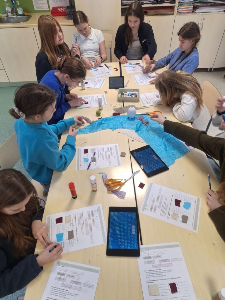🛷4. ja 5.klassi käsitöö tunnis uuriti TTS mikroskoobiga kangast, võrreldi looduslikke ja sünteetilisi materjale.