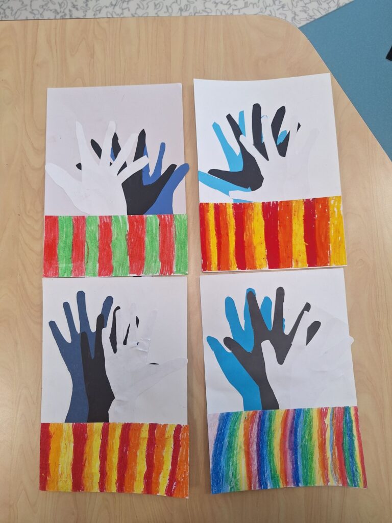 🛷1.K klass meisterdas eestilikku pilti. Pildile said käed, mis kujutavad laste arvates meie inimesi, loodust ja puid. Serva tuli laste enda mõeldud rahvariiete seeliku muster.